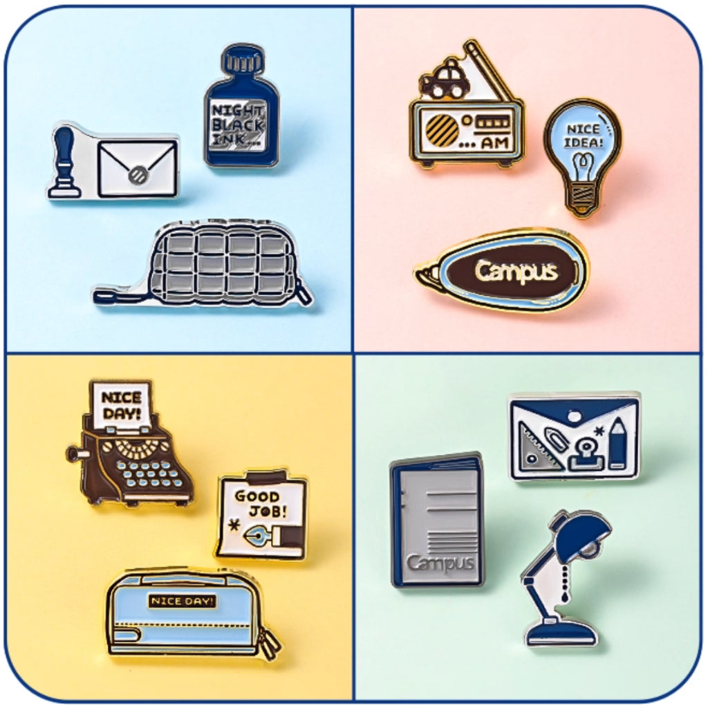 Special release Kokuyo Campus x Eric, rubber stamp illustrator enamel pins.