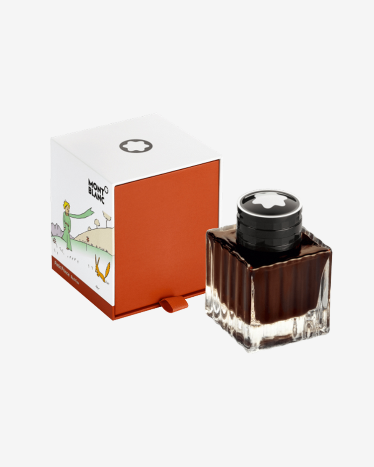 The Montblanc Le Petit Prince Red Fox is a limited edition, brown-orange, well-behaving fountain pen ink inspired by the fur of the fox in The Little Prince, featuring beautiful shading from ginger to amber and a unique earthy tone without sheen.