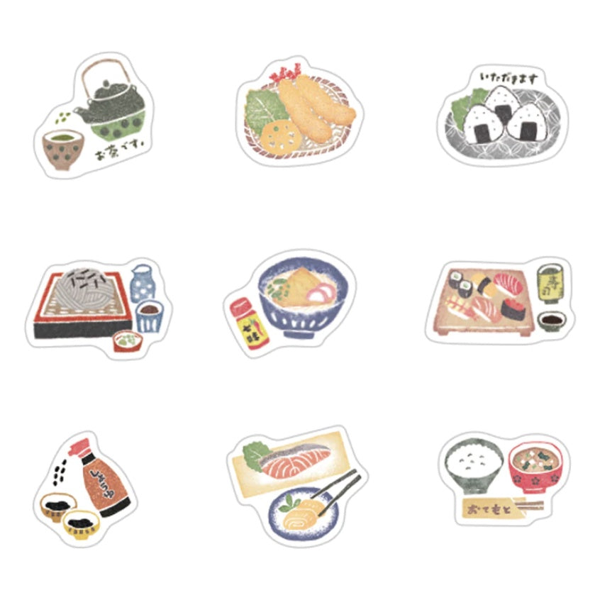 Cute typical Japanese food motif flake stickers by a Japanese illustrator Hankodori .