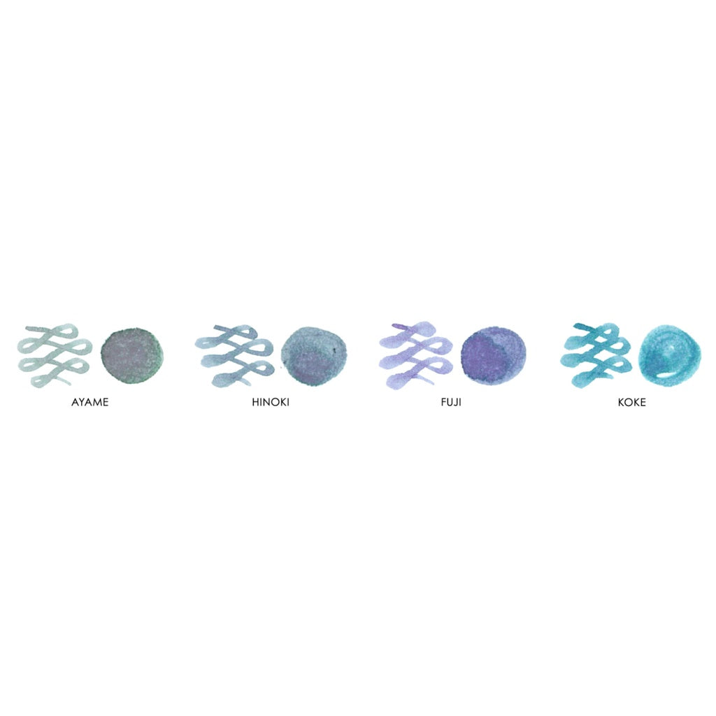 Manyo Koke is an aqua blue ink with shading into purples and green.