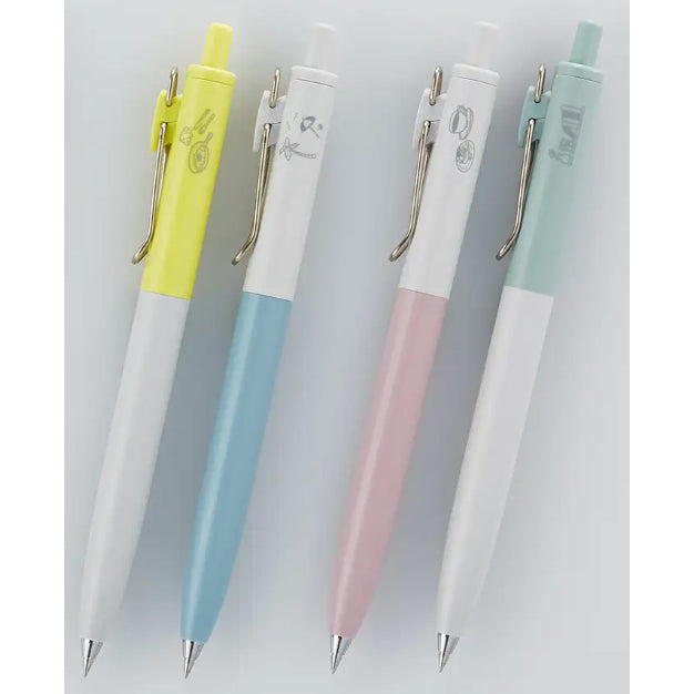 The Uni-ball One F have has a two-tone barrel design based on white, illustrations printed on the barrel that correspond to the four themes.
